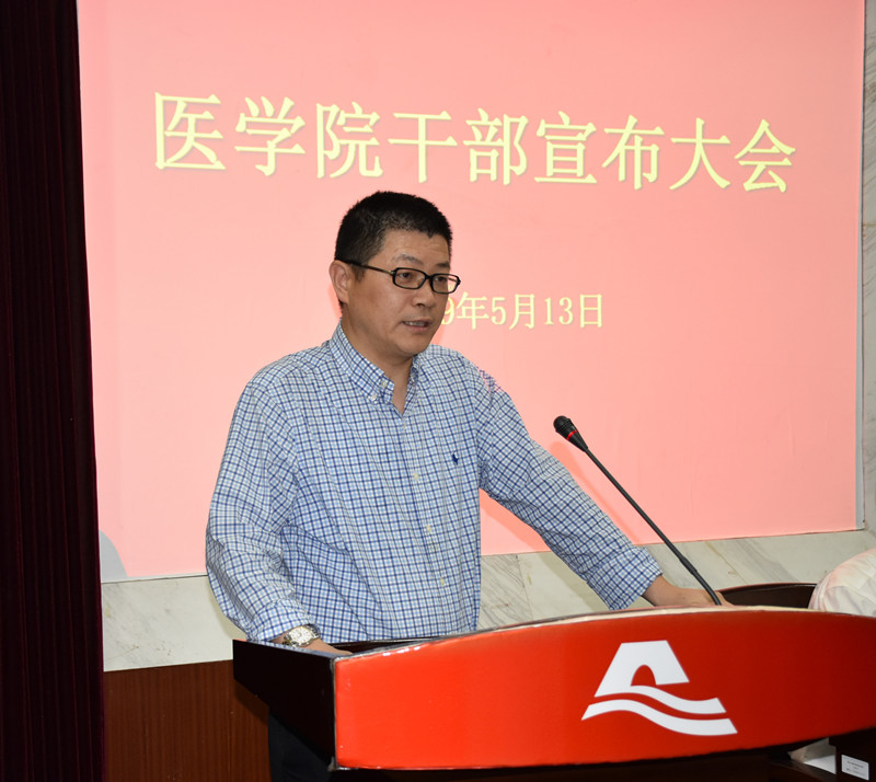 汪俊昌书记作重要讲话。他对学院上一届领导班子所做出的工作业绩给予了充分的肯定,同心协力、艰苦奋斗,为新葡的京集团350vip8888官网进一步的发展打下了良好的基础,在学校更名设置大学的关键时期,汪书记代表校党委行政对学院新一届领导班子提出了三点希望和要求:一是要对标补短,凝炼特色,推动学院内涵式发展。今年是学校更名设置大学的决胜之年,学校的发展处于非常关键的战略机遇期,新葡的京集团350vip8888官网一定要增强做好工作的紧迫感、责任感和使命感,要把握好历史机遇,奋力向前,进一步坚定发展的信心和决心,切实增强啃硬骨头打赢关键战略的勇气和胆略,遵循医学教育的发展规律,突出重点,开拓创新,努力朝着建设一流新葡的京集团350vip8888官网的目标不断迈进。二是要着眼大局,团结协作,扎实推进班子的凝聚力建设。他希望全院上下识大体顾大局,自觉把思想和行动统一到校党委的决策部署上来,凝聚到学院的事业发展上,一切以学院事业的大局为重,以业务发展的规律为重,以党建的引领来推动各项事业更好的发展。三是要践行好干部标准,做到忠诚、干净和担当。一个好干部的标准首先要讲政治,还要勇于担当,善作善成,时刻谨记习总书记提出的“信念坚定、为民服务、勤政务实、敢于担当、清正廉洁”20个字的好干部标准。清白做人,干净做事,主动接受大家的监督,共同营造风正气顺的良好氛围。他希望新葡的京集团350vip8888官网建设成为让组织放心、让教职员工满意的班子,共同开创学院事业发展的新局面。