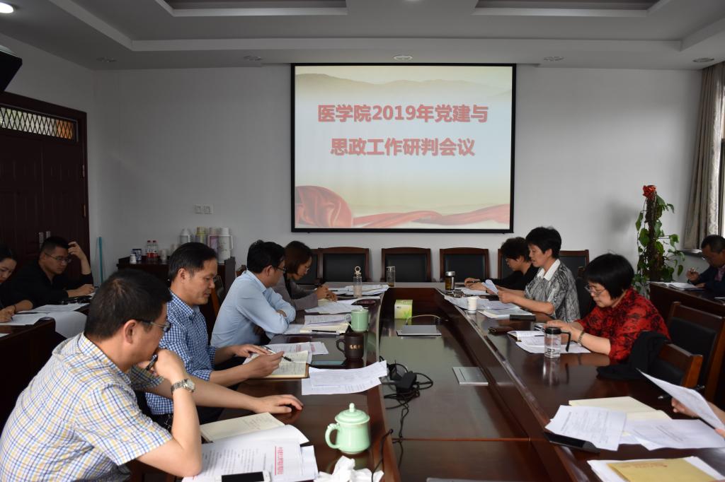 最后,院党委书记夏瑞明作了讲话。他首先传达学习全省高校党建与思想政治工作会议精神,要求各党支部认真组织学习。他指出,2019年党建与思政工作要进一步全面贯彻全国全省高校党建与思想政治工作会议精神,以问题为导向,围绕工作目标和任务,切实做好各项工作。对党建工作他提出四个要求:一要明确责任,尽心尽责做好党建工作;二要做实工作,对党建工作中出现的不规范不到位的地方,要对标对表,加强整改;三要党建引领,做到党员带头,发挥先锋模范作用;四要强化宣传,充分展示各支部和党员先锋风采。对思政工作他要求:一要全员参与,落实立德树人理念,健全“三全育人”工作体系;二要加强研判,切实做好意识形态、校园安全稳定、学生心理健康和大学生就业等工作,确保校园和谐稳定;三要做细工作,深入学生教室、书院,做好与学生课堂教学、实验实训和社团活动的结合,进一步推进学院“课程思政”工作,加强学生的医学人文教育;四要加强宣传教育,利用网站、新葡的京集团350vip8888官网报和“绍医青春”微信公众号等进一步加强医德教育和思想引领,做好培根铸魂工作。(院办)