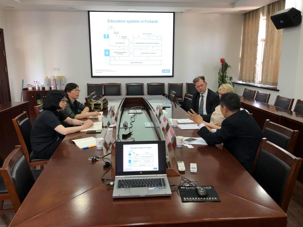 5月22日,芬兰东南应用科技大学校长兼CEO Heikki,健康福利学院院长Katri来新葡的京官网商讨合作事宜。我校外事处处长高丽娟,新葡的京集团350vip8888官网副院长陈三妹,及相关职能部门负责人参加了会议。