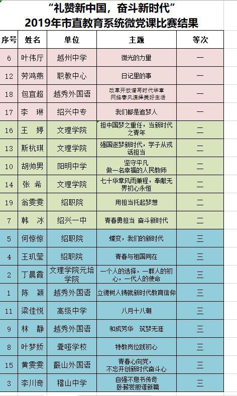日前,市教育系统公布了“礼赞新中国·奋斗新时代”主题微党课大赛获奖名单,新葡的京官网张希老师的作品《七十华章风雨兼程,奉献无界初心永恒》紧扣大赛主题,思路清晰,内容丰富,赢得评委和观众一致好评,经过激烈角逐,最终荣获个人二等奖。