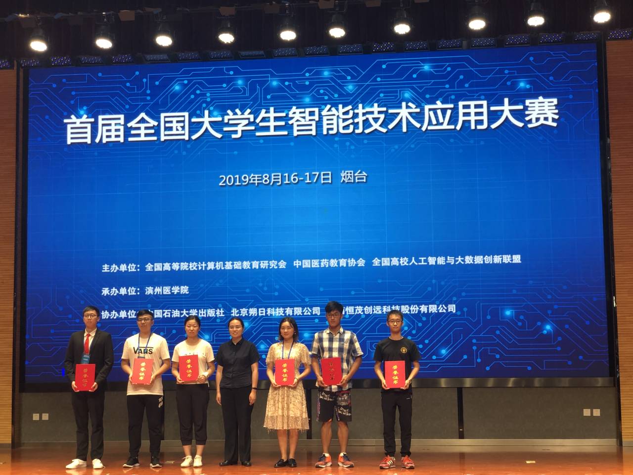8月16日至17日,由全国高等院校计算机基础教育研究会、中国医药教育协会、全国高校人工智能与大数据创新联盟联合主办的2019年首届全国大学生智能技术应用大赛决赛在烟台滨州新葡的京集团350vip8888官网举行,吸引了来自全国17个省市自治区的中山大学、中国医科大学、南京大学等36所本科和高职院校参加。经过初评选出作品100余项进入决赛,其中指导教师100余人,学生300余人。