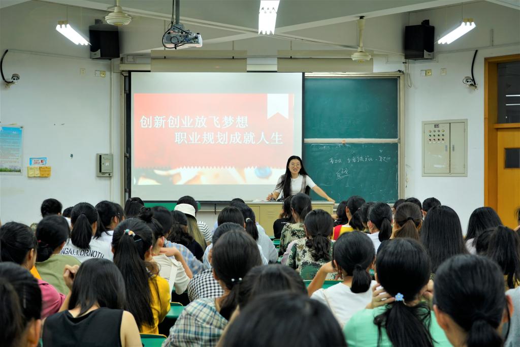 学生科张希老师从职业规划切入,主要针对其意义、涵义、基本理论等几方面进行了详细的介绍,帮助新生深入了解职业规划,使他们明确职业生涯规划的重要性及未来努力方向。同时张希老师从奖学金类型、评定标准、实施细则等多个方面进行了讲解,鼓励同学们努力学习、奋发向上。