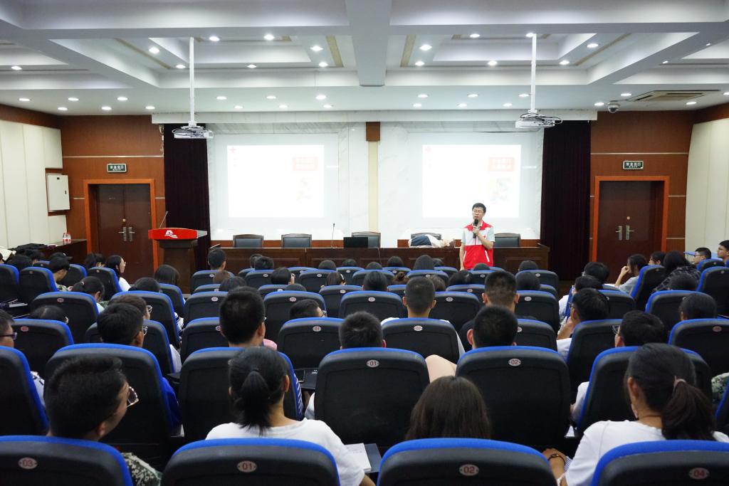 校红十字会副秘书长、浙江省红十字救护培训一级师资马国庆老师以现场急救的情景剧开场,以风趣幽默、通俗易懂的言语介绍了日常生活中常见的急症及意外伤害处理原则及基本操作技能。并利用模拟人进行现场演练,详细地解说了心脏骤停的判断方法、徒手心肺复苏和AED的操作步骤。同时,马老师运用生动的案例和详实的数据,从流行趋势、病程演变、感染条件和传播途径等方面进行介绍,帮助同学们更深刻地了解艾滋病的预防与防治相关知识,切实提高风险防范意识和能力。