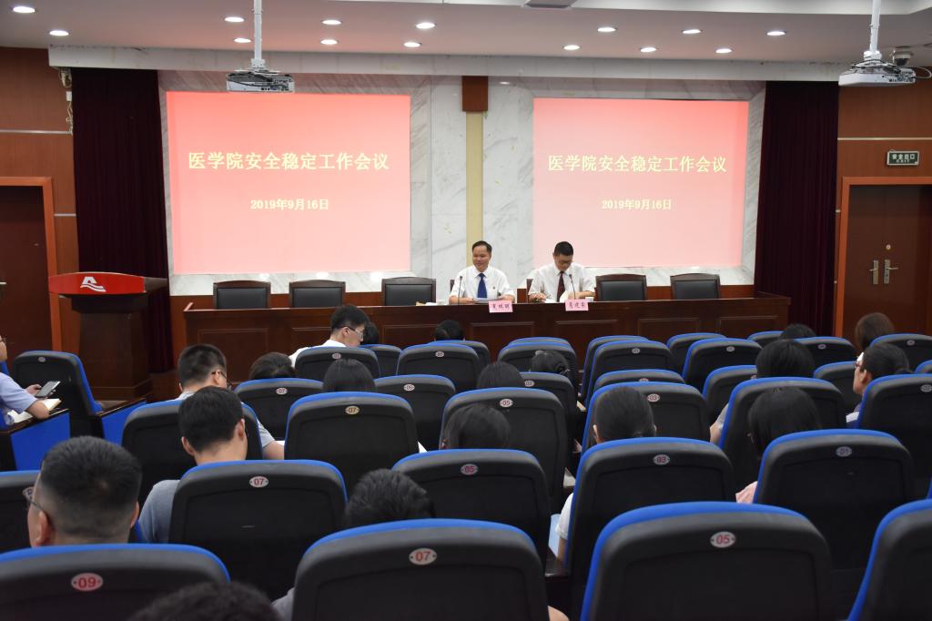 夏瑞明书记指出,各单位要根据学校安全工作会议总基调,全面落实好学生安全工作、“平安护航新中国成立70周年”学院安全稳定、学院安全隐患大排查、防范电信网络诈骗、深化预防“套路贷”、医学实验室危化品管理等方面具体工作。