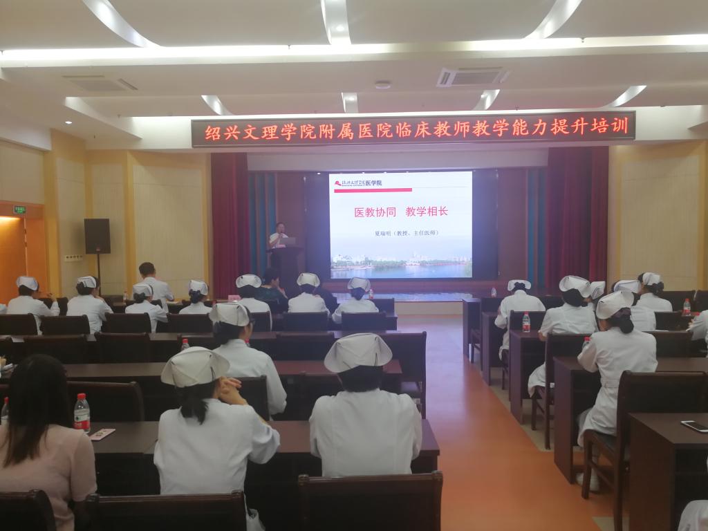 由新葡的京官网夏瑞明教授、张金萍教授、陈三妹教授和孙一勤博士等组成的专家团队赴附属诸暨医院、附属嵊州医院、附属第一医院和附属上虞医院四家医院,围绕“医教协同、教学相长”、“打造临床金课”、“案例教学示范课”和“法洛四联症示范课”等四个专题展开集中培训。培训班使7所直属和非直属附属医院的校、院聘兼职临床教师、见习带教、实习生授课、教学查房及病例讨论等近1300名教师直接受益,达到了集中培训、全面提升临床教师教学能力的目的。