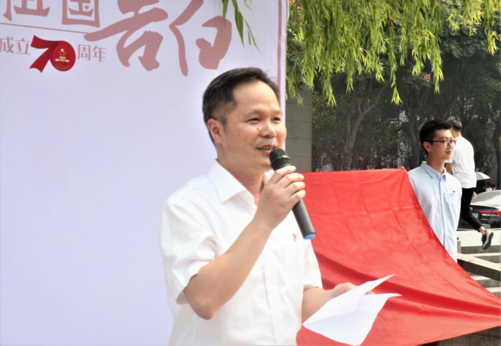 院党委书记夏瑞明致辞。他指出,新中国成立七十年来,党和国家事业发生历史性变革,中国特色社会主义进入了新的发展阶段。中国特色社会主义不断取得的重大成就,意味着近代以来久经磨难的中华民族实现了从站起来、富起来到强起来的历史性飞跃。青年医学生们要“不忘初心、牢记使命”,努力践行“修德求真”的校训,牢记医学生誓言,立志早日成才,为健康中国贡献智慧和力量。在新中国成立七十周年和学校更名绍兴大学的关键时期,让我们一起祝福祖国,一起祝福学校。