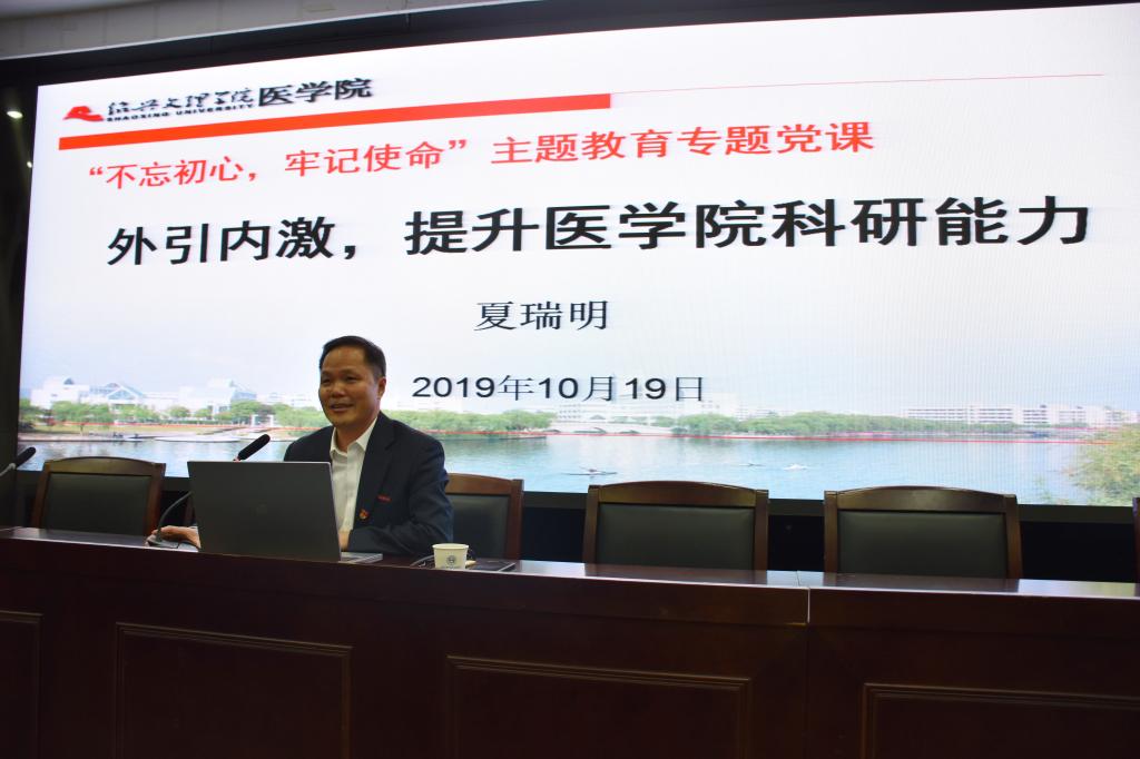 按照校党委的要求与部署,结合“守初心、担使命,找差距、抓落实”总体目标和要求,10月18日下午,在财贞楼二楼报告厅,新葡的京集团350vip8888官网党委书记夏瑞明以“外引内激,提升新葡的京集团350vip8888官网科研能力”为题,为全院党员教师上了一堂生动、鼓舞人心的“不忘初心、牢记使命”主题教育专题党课。党课由院党委副书记金坚强主持。