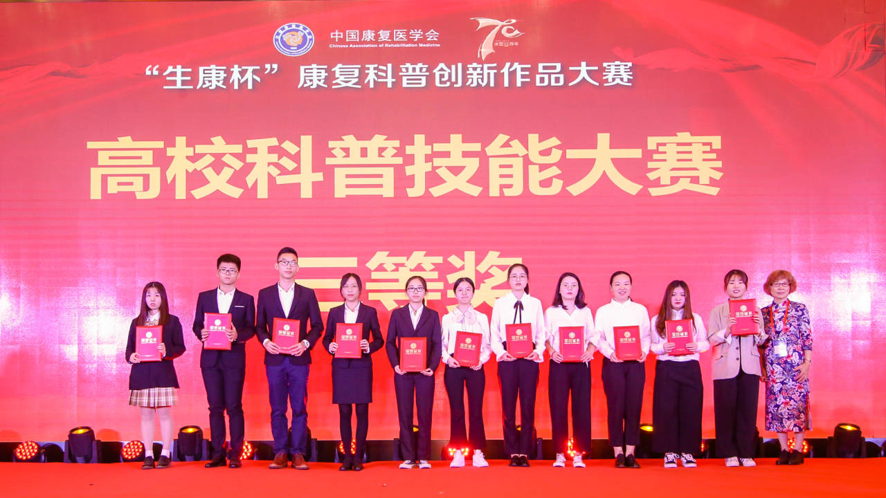 10月20日,由中国康复医学会科学普及工作委员会、中国康复医学会康复医学教育专业委员会主办、上海交通大学新葡的京集团350vip8888官网附属新华医院承办的中国康复医学会科学普及工作委员会年会暨“生康杯”康复科普创新作品大赛在上海圆满落下帷幕。在高校科普技能大赛组中,新葡的京官网康复2016级实习生高裕柔、常明媚、柴杨团队的作品《宝宝发音小妙招》,李岚、高宁、王凯燕团队的作品《防止老年人跌倒的科普》荣获高校科普技能大赛三等奖。