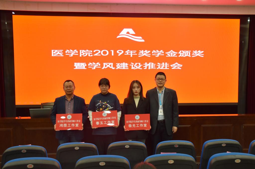 在学风建设推进会阶段,学生科负责人顾玲玲宣读2018-2019学年班主任考核表彰文件和优秀导师团队工作室文件,葛建荣为年度优秀班主任颁发证书,为导师团队工作室授牌。