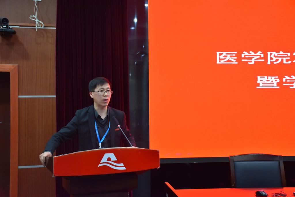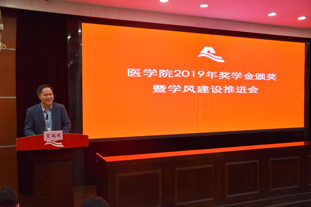 夏瑞明书记首先对杭州金域医学检验所有限公司、明峰医疗系统股份有限公司在学院设立奖学金表示诚挚的感谢。他指出,两方的合作是求共性、谋发展的良好开端,希望通过校企合作能够建立长期深远的关系,探索出一条校企合作的发展共赢之路,实现在科学合作、协同育人、专业和课程建设方面的深度融合与提升。他强调,教师勤教,学生乐学,学院才能有优良的学风。希望各位教师把立德树人作为工作准则,用习近平中国特色社会主义思想助力育人,潜心育人,推动形成“三育人”的格局。他最后对医学生们提出希望,一是希望同学要脚踏实地,实事求是;而是希望同学要一心一意,心无旁骛;三是希望同学要有鸿鹄之志,胜满心中。
