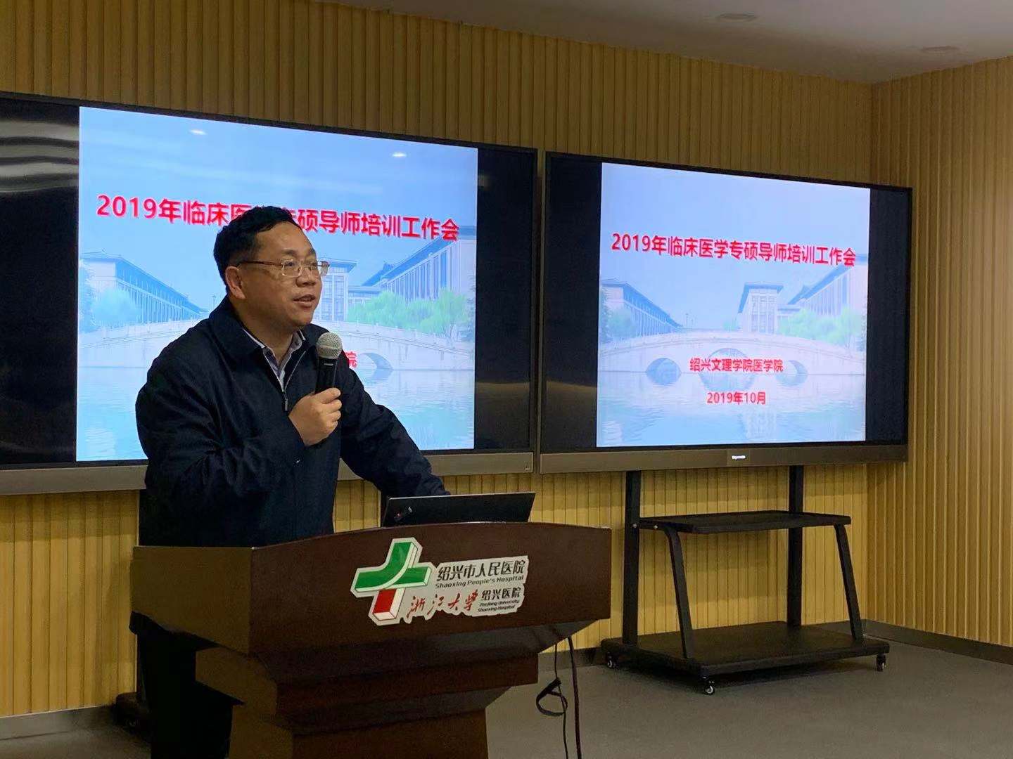 为进一步加强临床医学研究生导师队伍管理,确保研究生培养质量,促进学科内涵建设,提升科学研究水平,10月30日晚,学校在校附属第一医院召开2019年临床医学研究生导师培训工作会议。校党委委员、副校长柳国庆,新葡的京集团350vip8888官网、校附属第一医院院长郭航远,新葡的京集团350vip8888官网党委书记夏瑞明、副书记金坚强、副院长张剑、学校科技处相关负责人等出席并讲话。校临床医学研究生导师、院研究生工作办公室、各联合培养基地分管研究生教育相关负责人及管理人员参加本次会议。培训会由浙江大学“求是特聘教授”、国家“万人计划”科技创新领军人才李君教授主讲。院常务副院长葛建荣主持会议。
