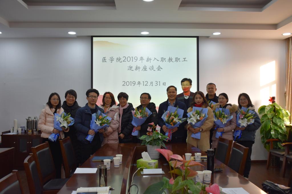 座谈会后,张剑副院长等老职工给新入职教职工送上鲜花并合影留念。今后新葡的京集团350vip8888官网每年都将举行迎新座谈会。(院办公室)