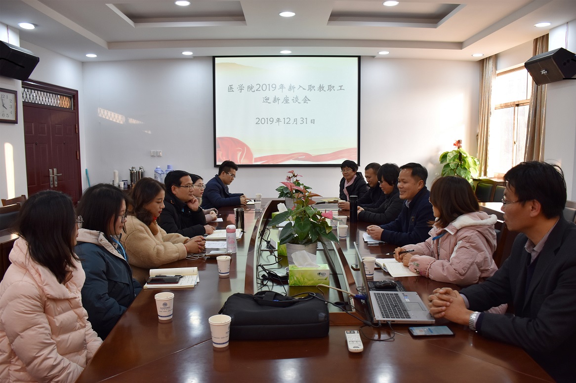 为增进新入职教职工全面了解学院发展概况,加强新入职教师职业引导,学院举行了2019年新聘教职工迎新座谈会。12月31日下午,学院2019年新入职教师迎新座谈会在一号楼219会议室举行。院党委书记夏瑞明、副院长张剑,康复医学系、司法鉴定中心、护理系、学生科等相关系部、科室负责人及2019年新入职的全体教职工等参加座谈。会议由院党委副书记金坚强主持。
