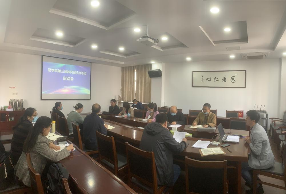 4月20日上午,学院在行政楼219会议室召开2022年教风建设月活动启动会,副院长张剑出席会议并讲话。教研科、各系(部)、教师发展中心、医学实验中心、“新医科”教育研究所等部门负责人参加会议。教研科科长马国庆主持会议。