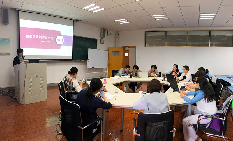 三位教师对“雨课堂”教学模式,就功能特色、教学特点、内容模式、备课方法、学生任务安排和课堂互动等方面进行了详细介绍,使用雨课堂进行授课并进行实战演练,并指导各位教师亲身体验。