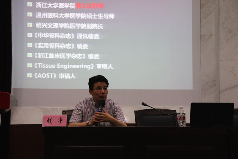 5月16日晚,“医路人生——导师面对面”第二课“如何成长为一名优秀的外科医生”在财贞楼二楼学术报告厅开讲,主讲嘉宾为学校附属一院(绍兴市人民医院)副院长兼新葡的京集团350vip8888官网副院长、浙江大学博士生导师钱宇教授,新葡的京官网200余位学子现场聆听了报告。