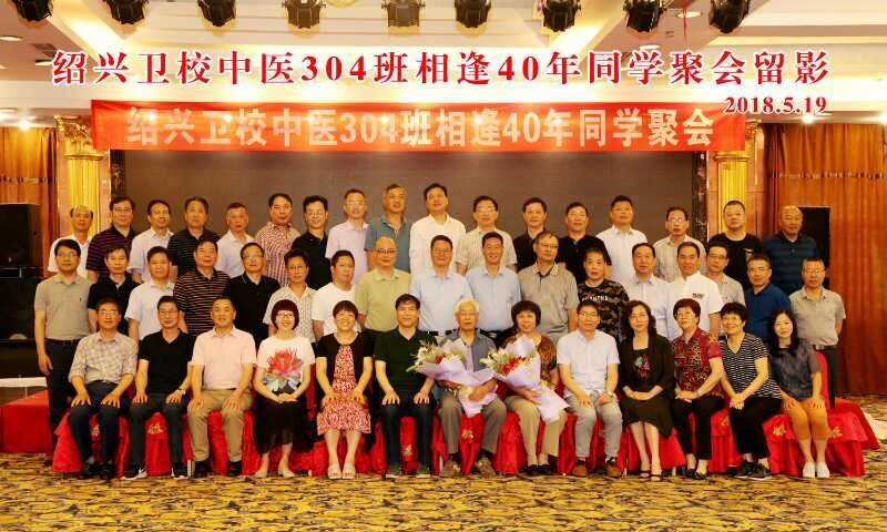 5月19日,绍兴古城初夏摇曳,原绍兴卫校中医304班45位同学欢聚一堂,个个脸上都洋溢着欢乐与喜悦,与王国樑、石富娟两位恩师一起相聚在绍兴风光大酒店。