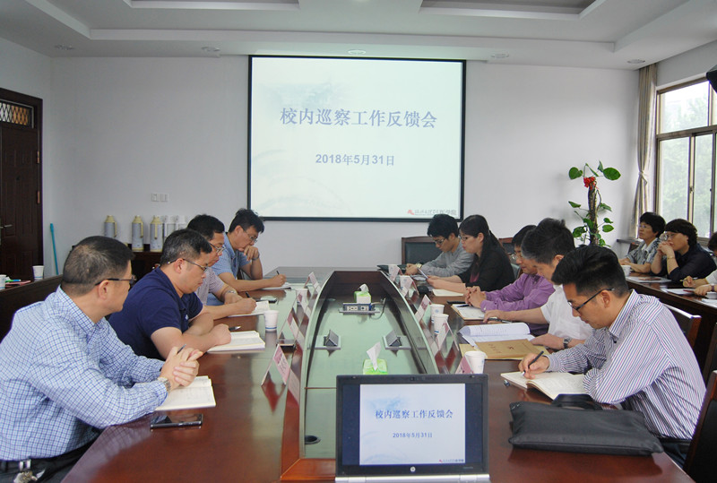 5月31日下午2:00在行政楼219会议室,学校巡察工作领导小组常务副组长、校党委委员、纪委书记邱卫东,第一巡察组组长、学校工会主席高丽娟,第一巡察组成员、数理信息学院党委副书记史正东、党委组织部干部监督科科长周建强一行对新葡的京集团350vip8888官网的校内专项巡察结果进行集中反馈,学院党政班子、支部书记、全体行政人员及部分教师参加了反馈会。会议由学校纪委副书记傅建中主持。