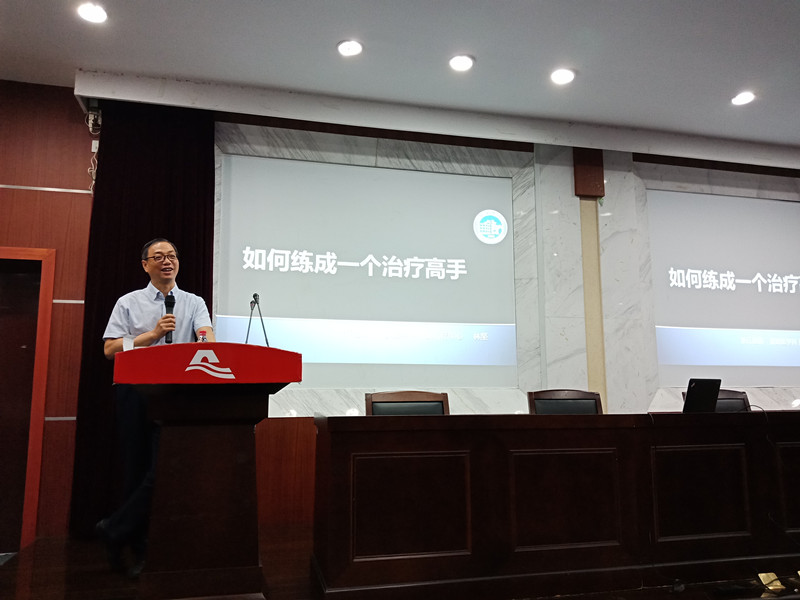林坚主任从就业前景、就业选择、职称进阶、康复发展史、康复治疗师的养成等五个方面介绍了康复治疗师的职业发展与规划。围绕就业选择,林主任结合国内外康复机构的设立和发展,讲述了康复治疗师就业可以多样化,可以在医养结合机构,社区康复,综合医院,民政机构等多个单位和机构从事康复治疗。他特别指出,创立个人工作站会是康复治疗师未来的职业趋势。在谈到康复治疗师的养成时,林主任结合自己三十多年从事康复医学和康复治疗师管理经历,从基本理论阶段(基础理论:解剖基础,运动基础,临床基础;基本治疗技术)、初级实战阶段(五个基础:沟通,评价,目标设定,操作,运动处方)、专科确定阶段(专科兴趣,专科知识结构,专科治疗技能,专科处理模式)、印证提高阶段(全面了解专业发展状况,发展方向,发展瓶颈)、融合阶段(哲学、人文、技能等)等五个方面同全体师生分享了他对康复治疗师职业的认识和理解。