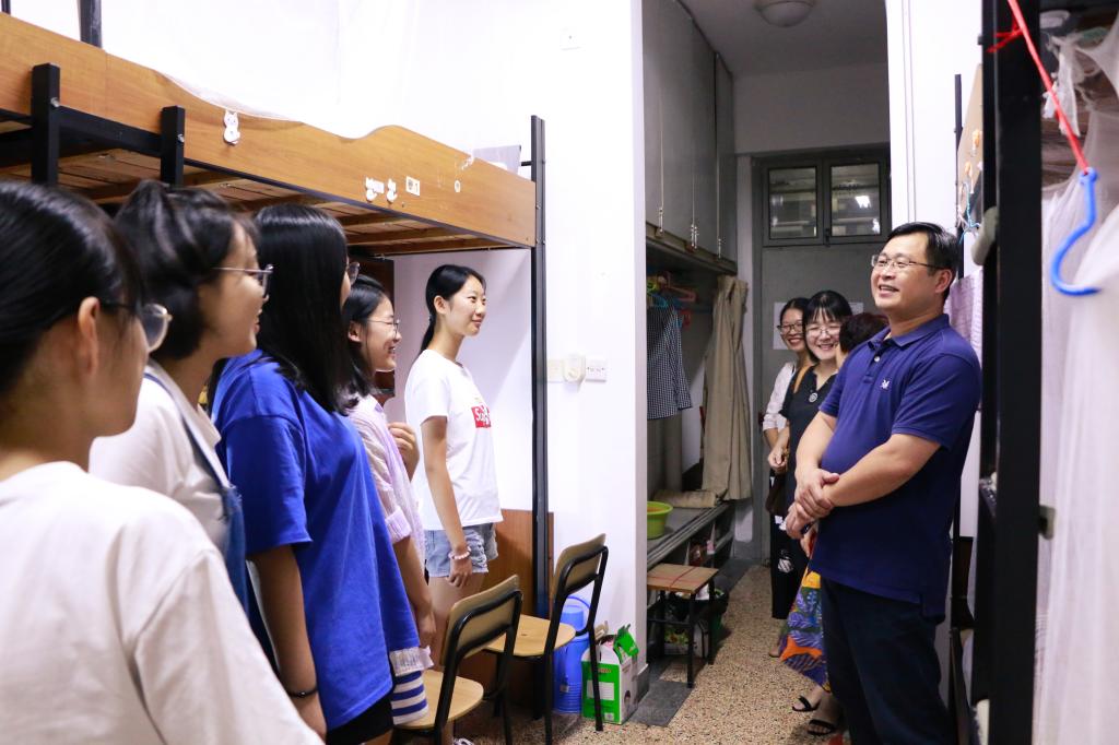在走访过程中,袁副书记详细地询问同学们“是从哪里来的?”“初到学校有何感受?”“有什么需要帮助的?”,十分关心同学们初到学校的适应情况,并嘱咐本地的同学要多多帮助远道而来的同学们,帮助他们尽快了解绍兴、熟悉学校。