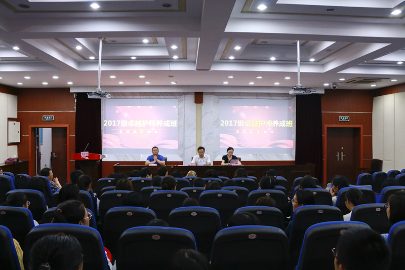 袁油迪副书记宣读“卓越护师”养成班导师聘任文件,聘任马红丽等14位教师为2017级“卓越护师”养成班导师,并且聘请来自美国加利福尼亚州的Priscilla女士担任英语口语老师。