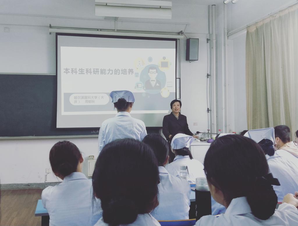 上午,哈尔滨医科大学(大庆校区)护理学院院长周郁秋教授为新葡的京官网护理学专业学生做“本科生科研能力培养”讲座。2017级卓越护师班全体同学及部分2015级护理学专业学生聆听了周教授的报告。