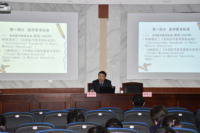 讲座围绕“医学教育标准”“医学专业认证实践”“实施医学教育标准”“对医学专业认证的思考”四个方面展开,对临床医学认证的重要性、国际标准、国内标准的制定过程以及我国医药院校临床医学认证的现状等做了详细的介绍。马教授还结合华中科技大学在“临床专业认证”工作中的经验及个人在“临床专业认证”工作中的体会,针对性地提出了建议。他指出,研究和实施国际医学教育标准是专业认证的重要基础,坚定不移地推进教学改革是实施专业认证的核心。进行医学专业认证,要遵循从国情出发、教育结果和过程紧密结合、构建与全球标准相匹配的国家标准三个原则;要明确好学生、教师和学校的责任,注重课程整合、教学方法多样化及评价方法的改革,促进基础与临床的相互融合,教和学融为一体,建立以学生为中心的人才培养模式。他还主张学校领导要高度重视“临床医学专业认证工作”,深入学习认证的标准,理解认证的实质和意义,明确本校认证的努力方向。讲座后,马建辉教授特意留出一段时间为会场的师生解疑答惑,大家就医学教学改革中遇到的一些实际问题做了深入的探讨和交流。