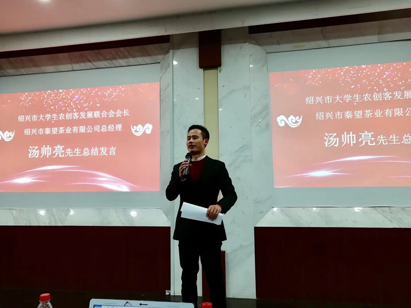 最后,绍兴市大学生农创客发展联合会会长、绍兴市秦望茶业有限公司总经理汤帅亮对本次比赛进行了总结点评。他高度肯定了参赛选手们拼搏进取、创新创业的精神,鼓励他们再接再厉,争创佳绩。他指出,在“大众创业,万众创新”的背景下,当代大学生要努力提高自身综合素质,培养创新创业能力,推动科技创新发展。同时,汤会长还强调将自己的创新创意点转化为实际的创业项目还有很长的路要走,更需要同学们不畏艰难,坚持到底。