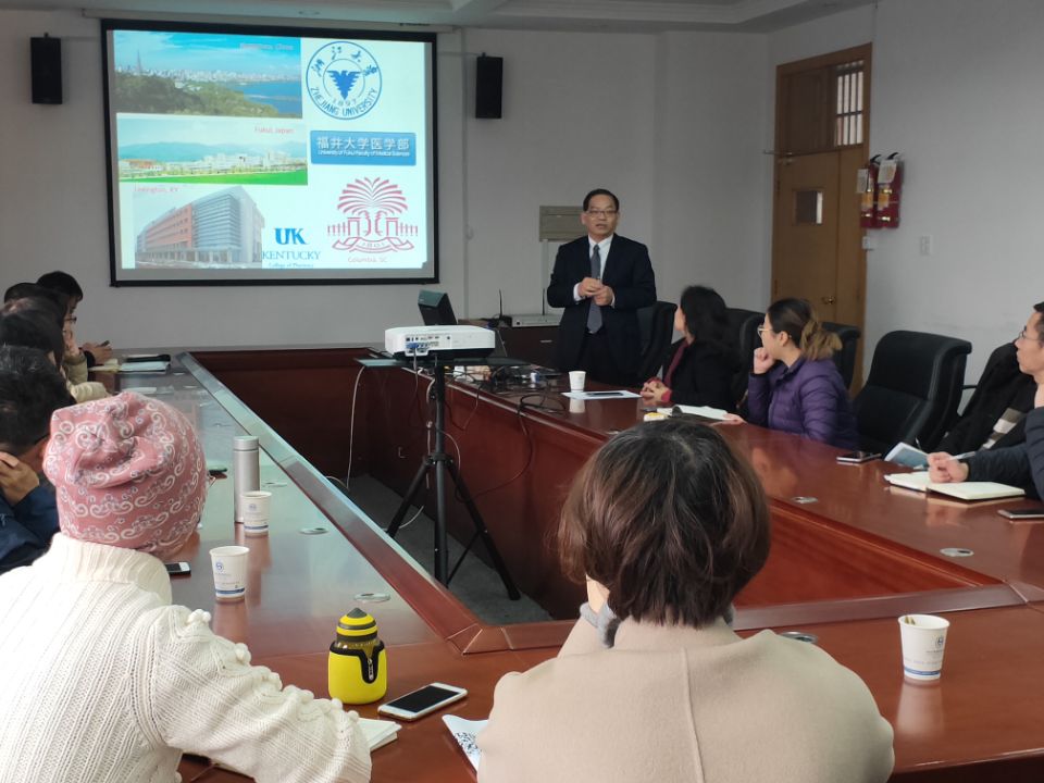 12月19日下午,美国南卡罗来纳大学药学院的朱军教授在3号楼409会议室为新葡的京官网教师做了“21世纪神经科学研究的前沿:探索可卡因和艾滋病毒对神经系统的损害”讲座。张剑副院长、孙爱静主任和新葡的京官网教师参加了讲座。讲座由主任孙爱静主持。