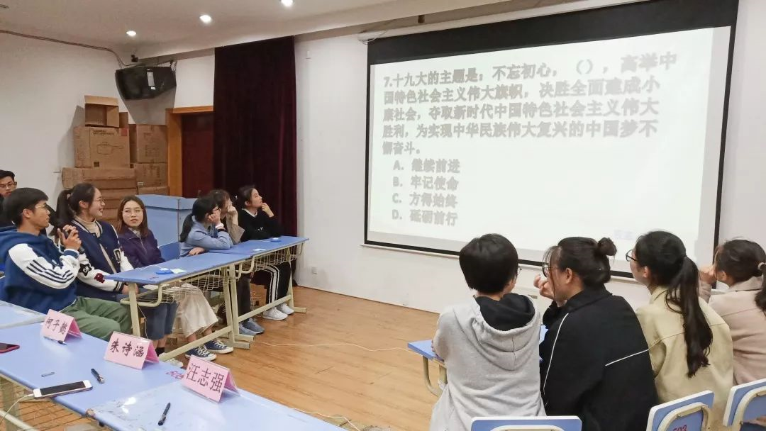 宣讲结束后便是抢答环节,选手们争相在这一环节踊跃表现自己,努力争取宝贵的答题机会;紧接着,在轮流答题环节,选手们尽其所能,使出浑身解数,为荣誉而战。