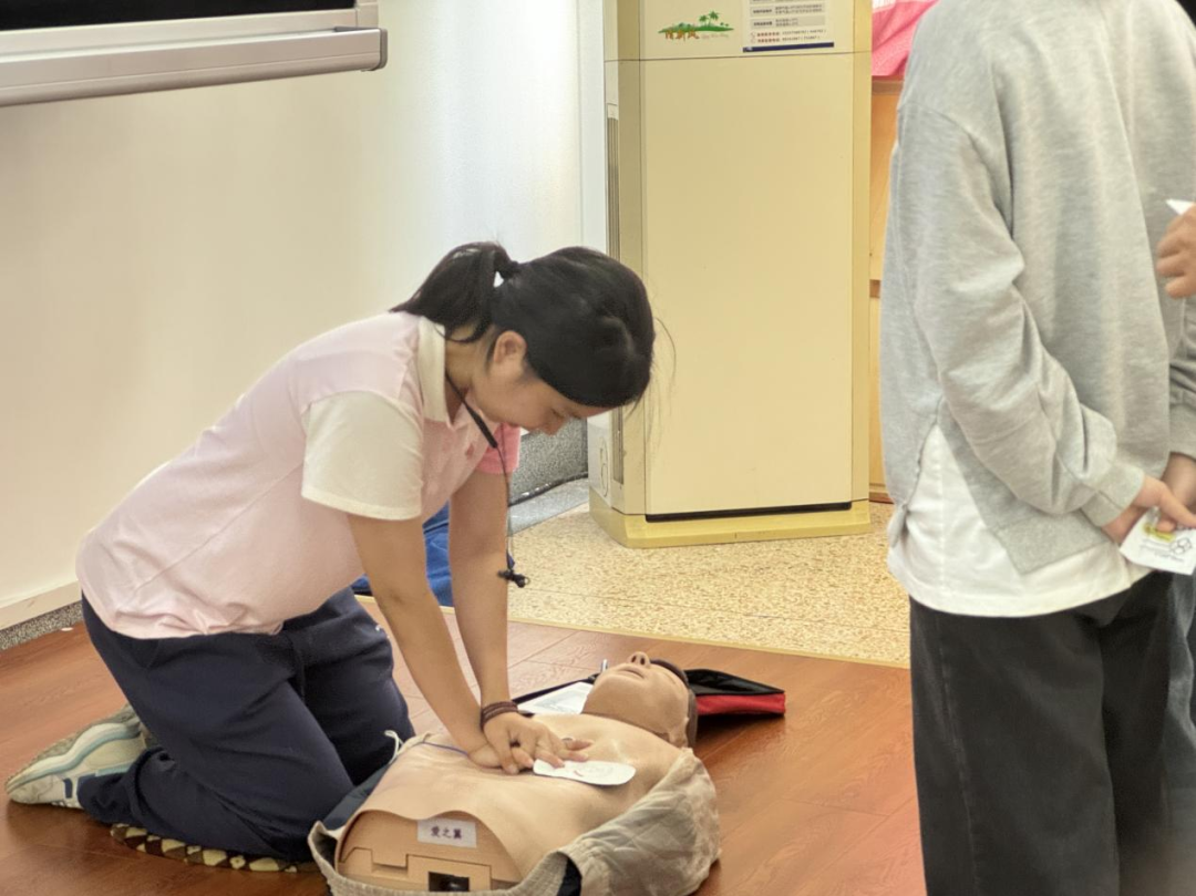内容涵盖了心肺复苏、AED 的使用,创伤救护等基本急救技能。在培训过程中,同学们认真聆听救护员的详细讲解,积极进行实操练习,不断练习和规范救援动作,努力掌握这些基本的急救技能。