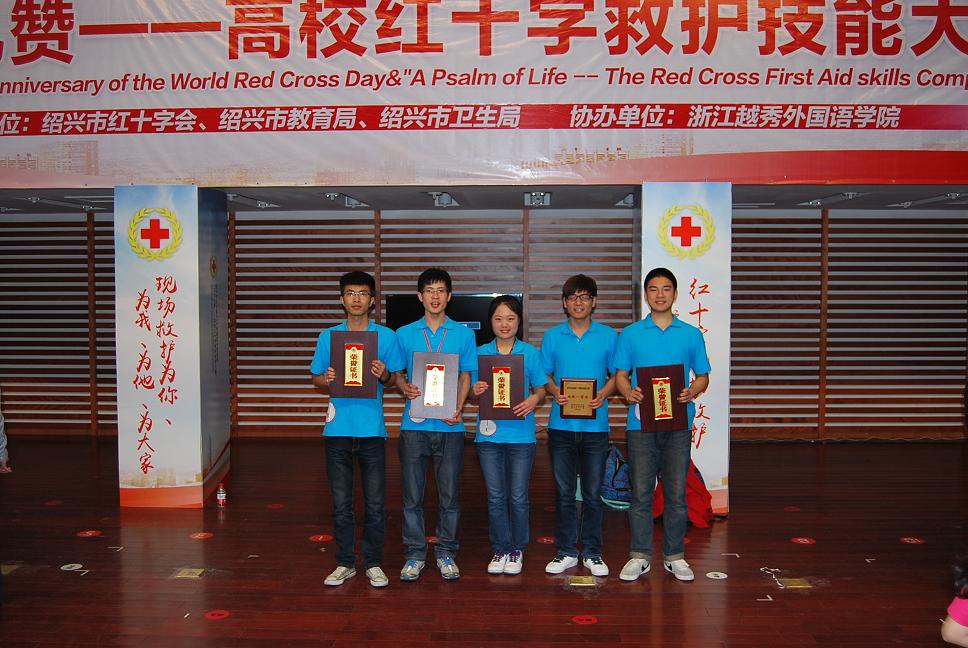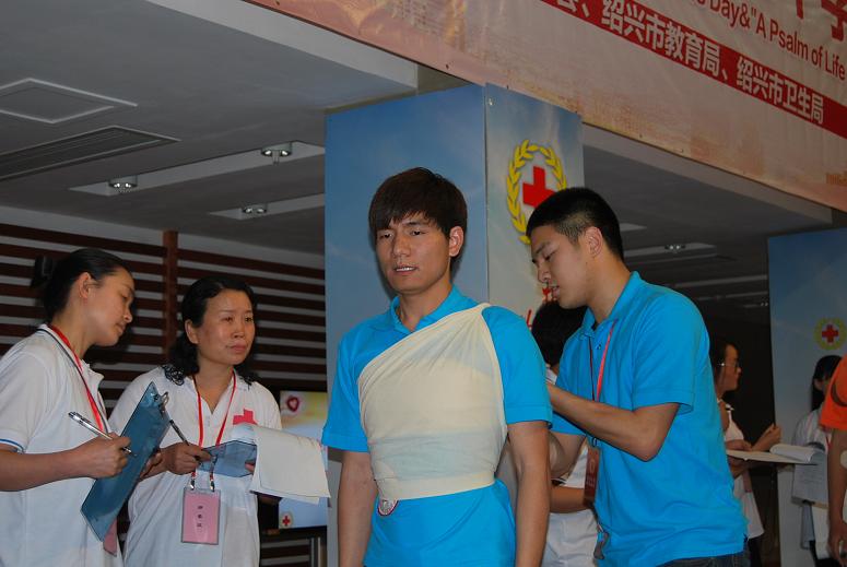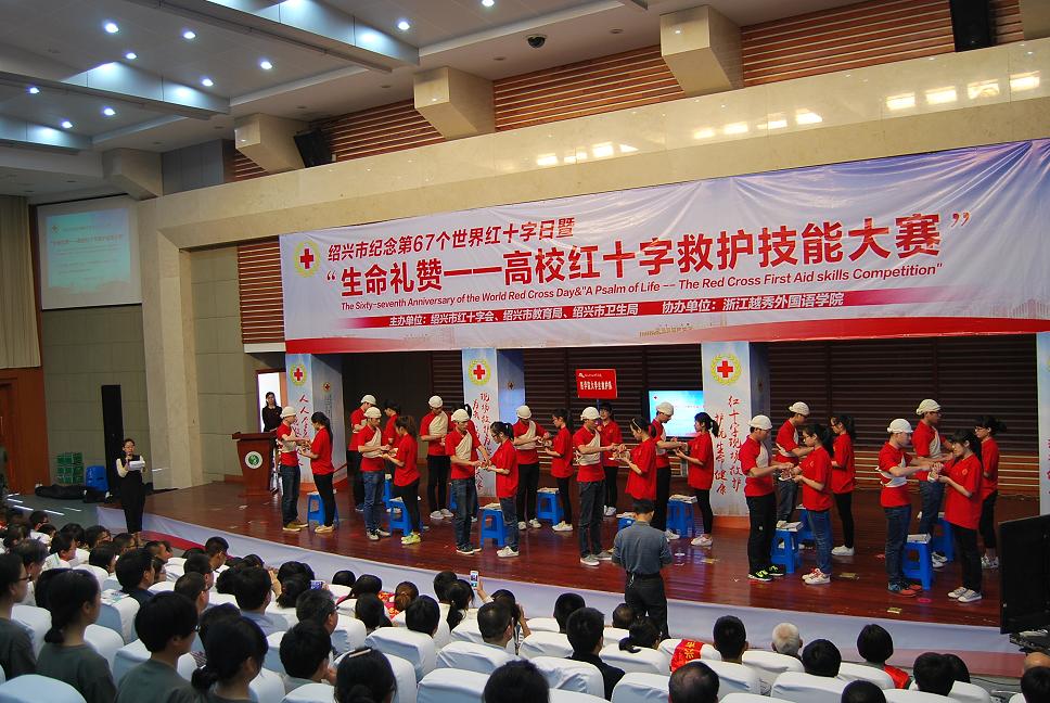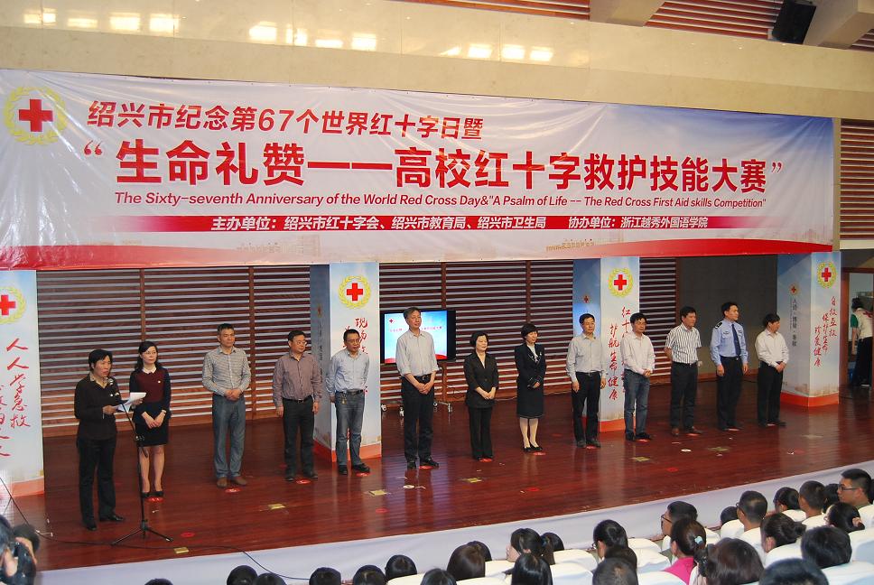 为纪念第67个世界红十字日,进一步弘扬“人道、博爱、奉献”的红十字精神,推动现场救护普及和生命关爱工作,市红十字会、市教育局、市卫生局等部门单位于5月7日在浙江越秀外国语学院稽山校区开展了“生命礼赞——高校红十字救护技能大赛”。市人大常委会副主任车晓端、市政府副市长、市红十字会会长丁晓燕、市政协副主席陈伯怀、市红十字会专职副会长、执委会主任张友珍等领导参加活动并为获奖选手和团队颁奖。
