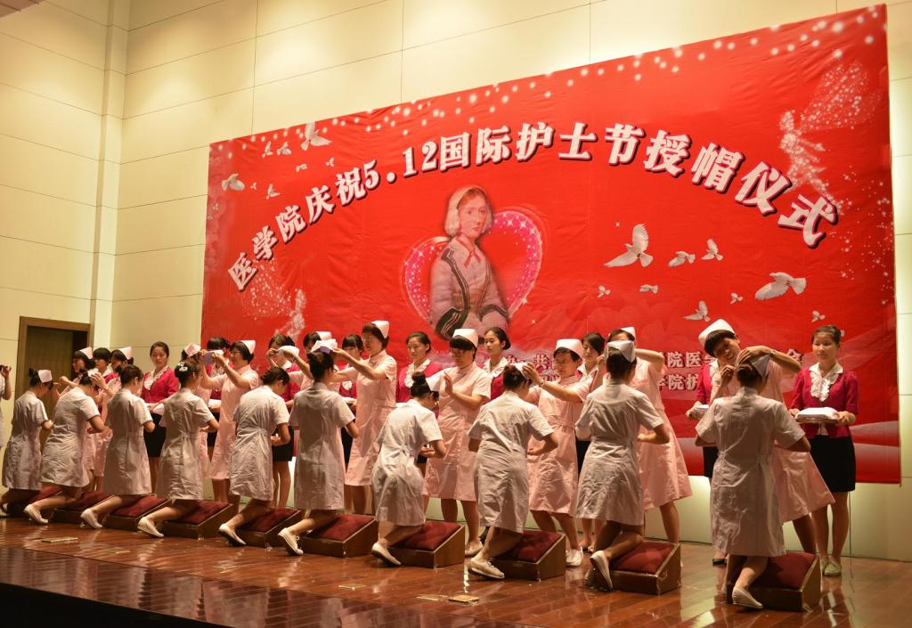 5月11日晚,校河西铁城科教馆报告厅灯火通明,场内布置温馨、庄重,新葡的京官网在此隆重举行庆祝5.12国际护士节授帽仪式,为即将踏入临床实习岗位的11级护理学专业203位护生授帽加冕。校党委委员、副校长寿永明,校党委学工部副部长、招生办主任梁瑜,校教务处副处长吕慧萍,校团委书记周旗江,院领导柳国庆、王建华、夏国圆、娄钰华出席授帽仪式。