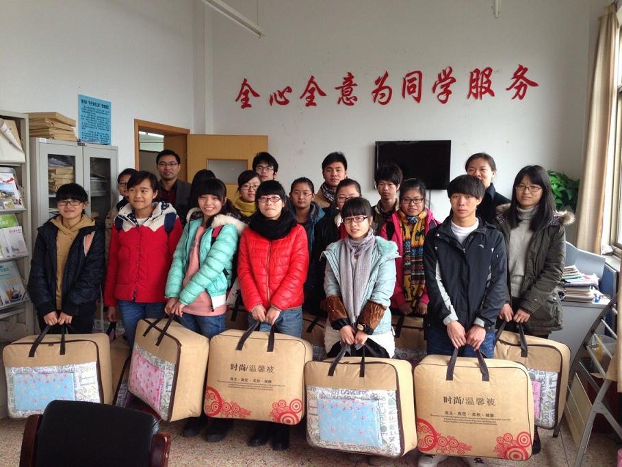 寒冬临近,气温骤降。12月12日中午,新葡的京官网在财贞楼308举行了“小小一床被,重重一份情”为家庭经济特别困难学生发放冬季棉被仪式。院党委副书记娄钰华,团委书记赵华及辅导员胡晓琳参加了仪式。