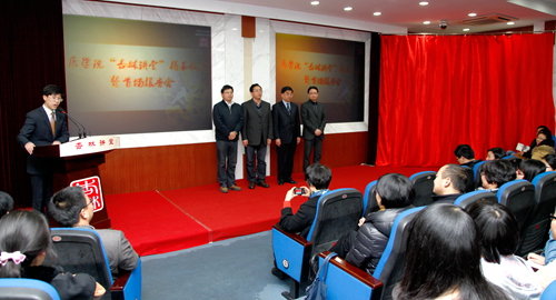 校党委委员、新葡的京集团350vip8888官网分党委书记柳国庆和校党委宣传部胡保卫共同为“杏林讲堂”揭幕。