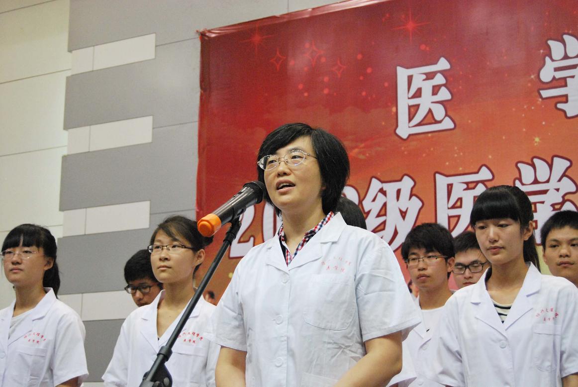 仪式结束后,临床医学专业王永振同学代表全体新生发言,他表示,要努力学习、掌握技能、踏实工作、发奋图强,为医疗卫生事业奋斗终生。授服专家代表校附属第一医院、绍兴市人民医院寿清和副院长在讲话中向有缘成为医学生,有志成为医学工作者的医学新生们表示了诚挚的祝贺和祝福。为了同学们能扎实走好每一步,她用“爱心、细心、耐心”与同学们共勉。她表示,优秀医生等于百分之百的爱心加上百分之百的细心再加上百分之百的耐心。希望同学们一定要坚持每一天学有所得、学有所长、学有所进、学有所成,才能勇敢地面对医生这一职业。要把医学生誓词转化成一种激励、一种提升、一种保障、一种道德力量,肩负起社会和人民赋予的责任,用实际行动塑造医生的美好形象。