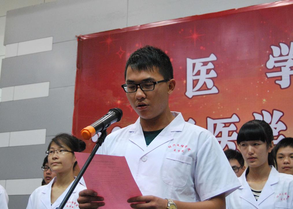 新生庄严宣誓,老师现场见证,师生共同承诺,起到震撼学生心灵,使命意识增强的良好效果。在铿锵有力的宣誓声中,同学们坚定了献身医学事业的信念,明确了自己的理想与奋斗方向。隆重庄严的医学生宣誓仪式已成为医学生大学里最重要的一课!