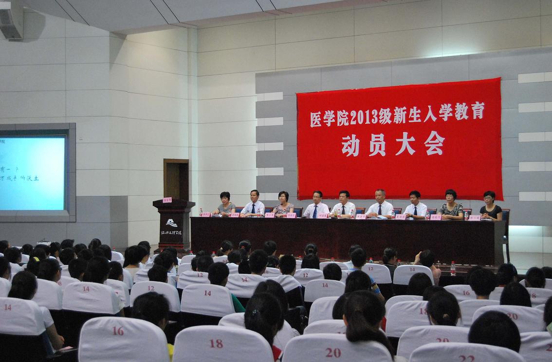 9月12日上午,新葡的京官网在铁城科教馆报告厅隆重举行2013级新生入学教育动员大会。校党委委员、院党委书记叶访春,新葡的京集团350vip8888官网、校附属第一医院、绍兴市人民医院院长郭航远,副院长王建华,副院长朱小芳,副调研员夏国园出席会议,院中层干部,学科(专业)负责人,全体新生班主任和辅导员、2013级新生及家长代表等参加了大会。大会由副院长朱小芳主持。