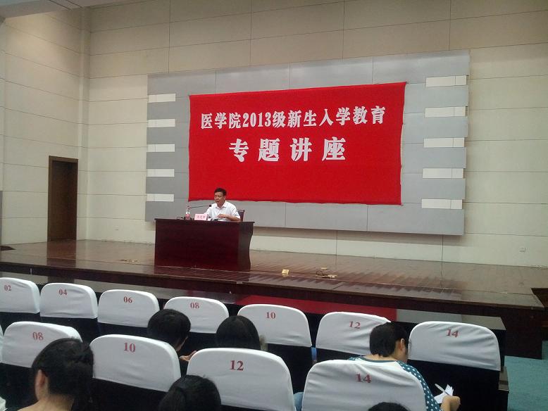9月13日下午,新葡的京官网在铁成科教馆举行2013级新生始业教育之大学生安全教育讲座。新生班主任、辅导员与333名新生聆听了讲座。