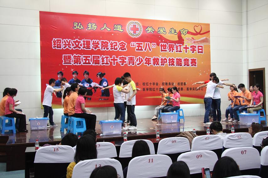 这是5月6日晚在铁城科教馆举办的校第五届红十字青年救护技能竞赛现场的场景。校红十字会、校教务处、校团委等部门相关负责人和各二级学院分团委书记出席活动并为获奖代表颁奖,来自全校各学院的近400名红十字志愿者观摩比赛。
