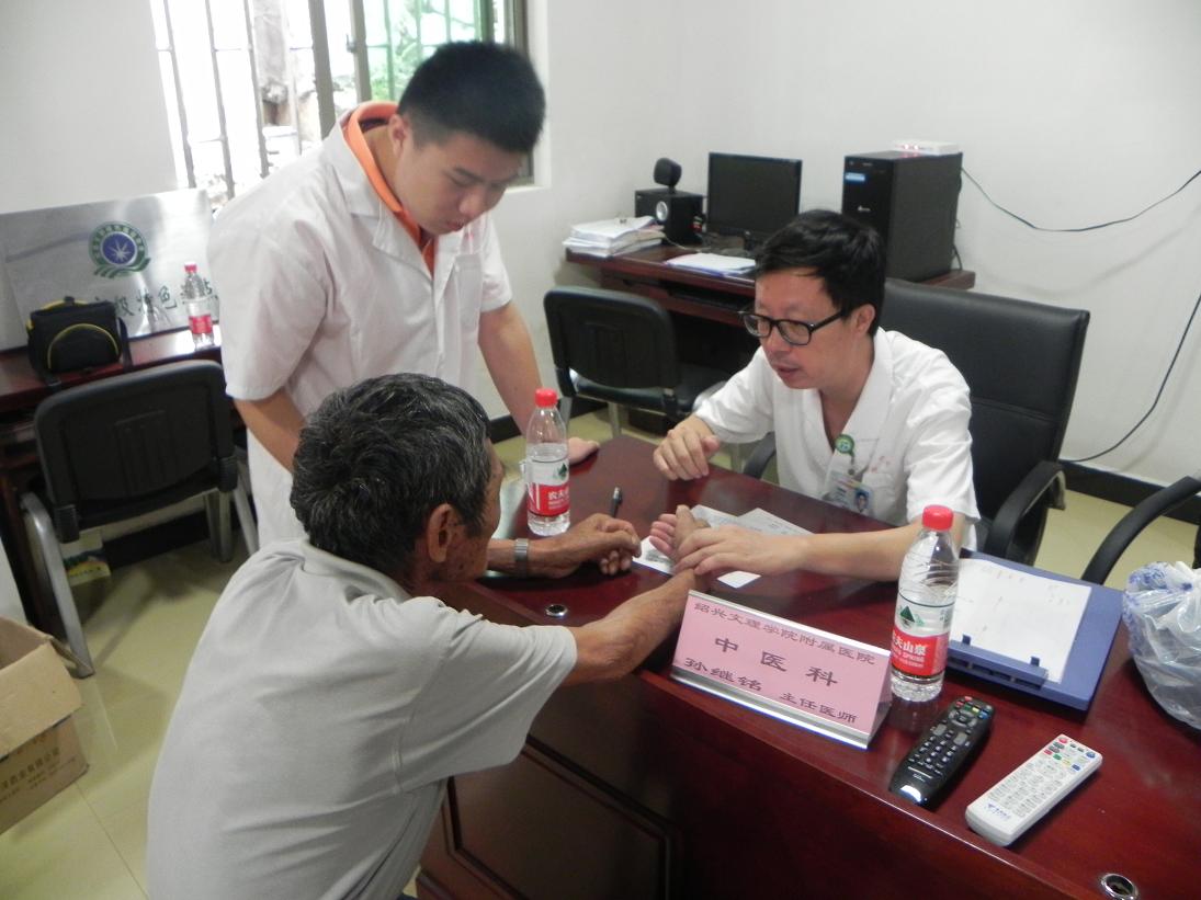 这一天与我们同行绍兴市附属医院的内科、外科、中医科、骨科的4位专家的周围都被早早等待的村民围的水泄不通,西医的视触扣听与中医的望闻问切相互熠熠生辉。汗水早已渗透了白大褂,可没有一个医生停下来休息,他们依然坚持,坚持为病患带去希望,坚守着恪守自己的信仰。