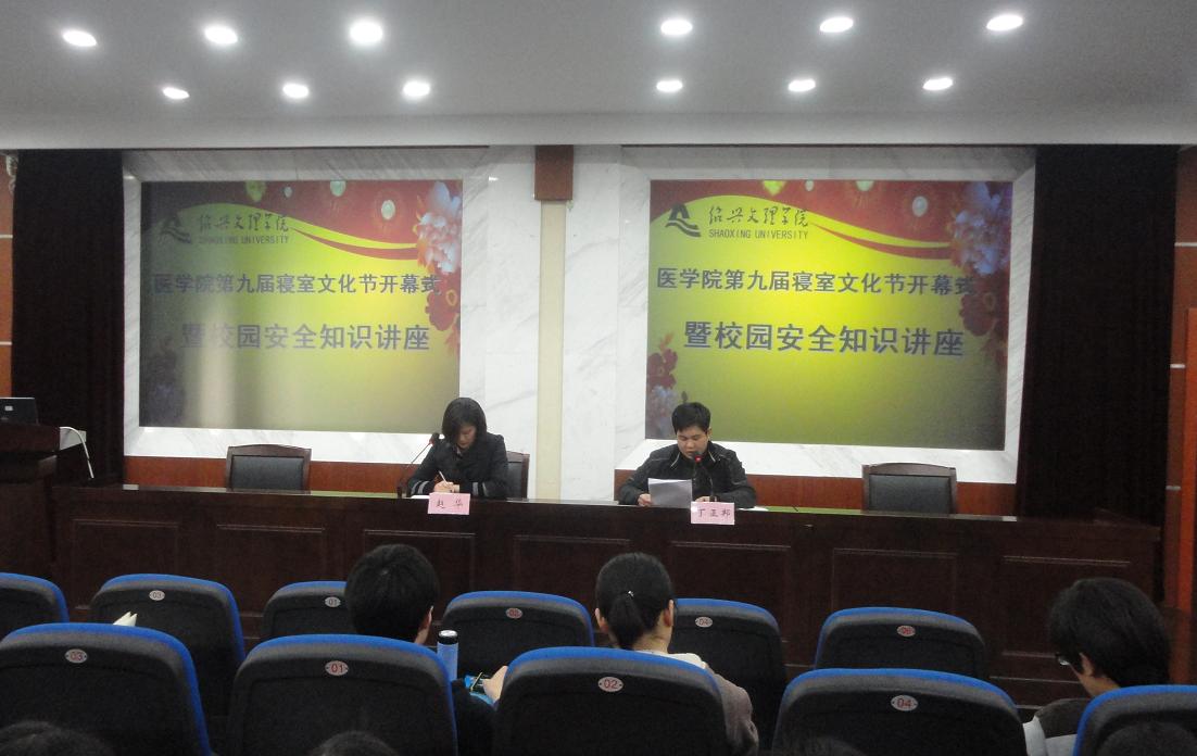 4月10日下午,院第九届寝室文化节开幕式暨校园安全知识讲座在财贞楼二楼报告厅举行。医学实验中心主任周瑾、团委书记赵华及学生科相关老师出席会议,院自管会干部和各班学生代表等160余人参加了会议。会议由赵华老师主持。