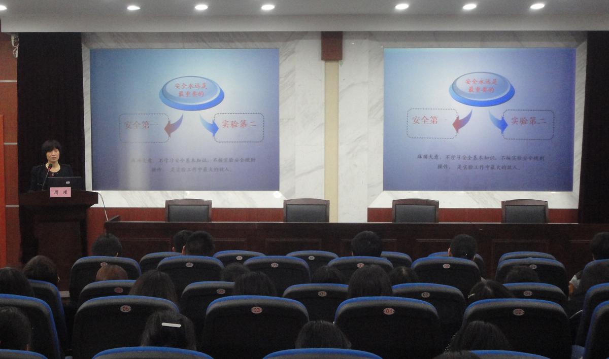 随后,周瑾教授就实验室的安全问题为在座同学上了一场新葡的京集团350vip8888官网实验室安全培训。她用幽默风趣的语言,生动经典的实例,从实验室安全管理的职责、实验室安全事故形成的原因以及实验室安全意外的对策等方面讲述并强调了实验室的安全工作。让在场的同学认识到了实验室安全的重要性和必要性。最后,丁正邦老师结合我校历年出现的安全事故事例,以“提高防患意识,共建平安校园”为主题,向同学们讲解了火灾、失窃、受骗事件等发生的原因和防范措施,并希望广大学生提高安全意识,共建和谐校园。