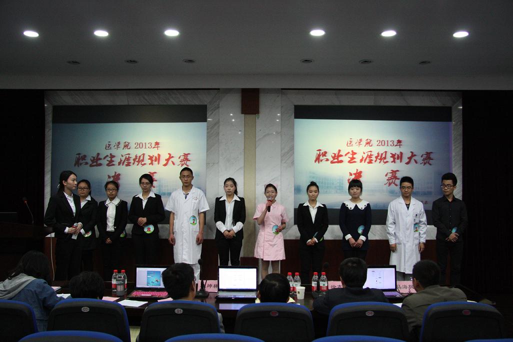 4月19日晚6时30分,新葡的京集团350vip8888官网2013年大学生职业生涯规划大赛总决赛在财贞楼二楼报告厅隆重举行。绍兴市卫生局副局长张文卫、校党委学工部部长杜坤林、校附属医院副院长徐志松、医学实验中心主任周瑾、全球职业规划师马海枫出席比赛担任大赛评委并为获奖选手颁奖。院学生科相关辅导员、系部主任代表与160余名学生一起见证了经初赛、复赛层层选拔脱颖而出的10位选手的职业生涯规划。