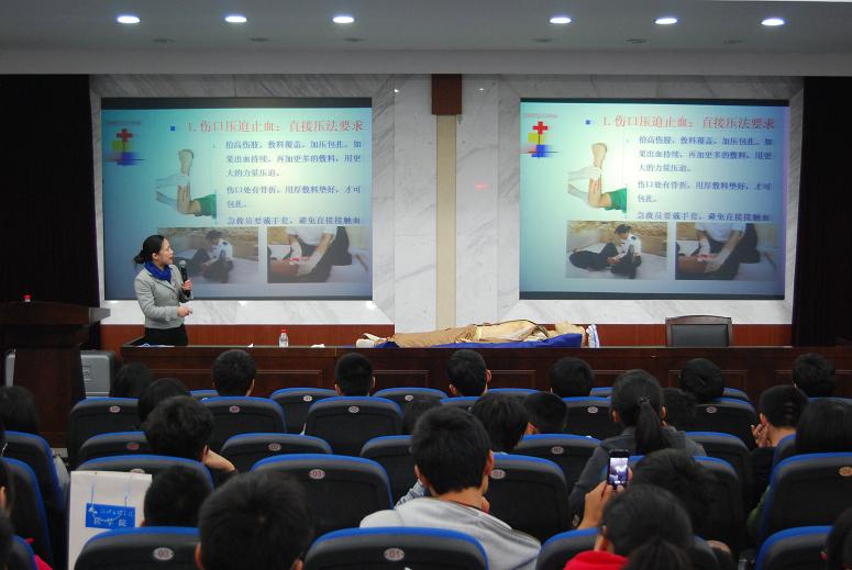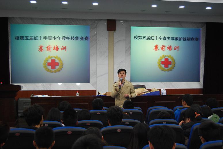 4月20日8时30分至17时30分,由新葡的京官网承办的新葡的京集团350vip8888官网第五届红十字青少年救护技能大赛赛前培训班在学术报告厅举行,来自全校15个二级学院18支代表队的90名参赛队员接受了培训。
