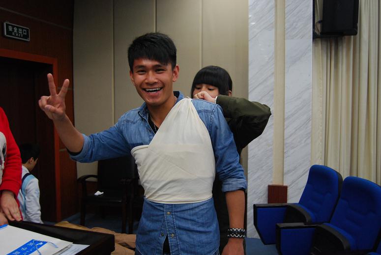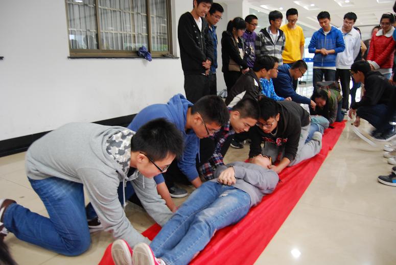培训内容的理论教学任务由校红十字会副秘书长、绍兴市红十字救护技能讲师团讲师马国庆和绍兴市红十字救护技能讲师团讲师、医学实验中心王玉兰老师承担。实践环节由新葡的京官网“爱之翼”救护社成员、省级救护技能大赛获奖者指导。培训的主要内容涉及现场心肺复苏、创伤救护(止血、包扎、固定、搬运)等现场救护知识。由于该培训具有较强的知识性,技术性,实用性和互动性,指导师讲解深入浅出、细致耐心、针对性强,学员们个个兴趣盎然、受益匪浅!通过系统的理论知识培训以及现场救护操作包括头部外伤包扎、胸部外伤包扎和手臂骨折包扎等的训练,学员们基本上能够掌握救护常识。