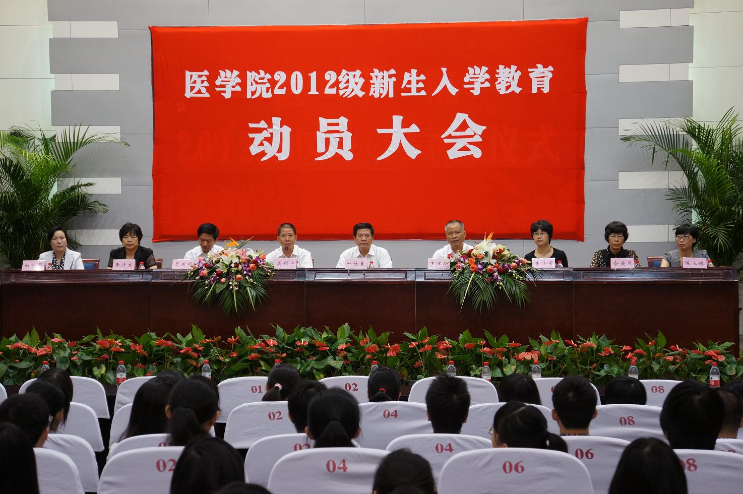 大会在庄严的国歌声中开始。院党委委员、副院长朱小芳在大会上发表了热情洋溢的讲话,她首先代表学院对2012级新同学的到来表示诚挚的问候和热烈的欢迎。随后,朱副院长向2012级新生简要介绍了学院的办学历史、办学理念、办学情况及办学成果。她指出,学院有着悠久的办学历史,优良的教风学风以及优良的办学条件,必定能培养出更多出色的人才。对即将踏入四至五年医学生涯的2012级新生,她提出了三点希望和要求。第一是要学会做人。医学生不但要做体格强健的人,做心理健康的人,还要做有大气、有抱负的人。第二是既要勤奋又要苦练。她希望大家牢记医学誓言:健康所系,生命相托。从事医学职业,不但要求大家有扎实的基本功,又要有过硬的技术能力。唯有勤学苦读,唯有埋头苦练,才能使自己成为就业有能力,深造有基础,眼高手不低的综合性、应用性、专业性人才。第三是要勇于创新。社会在不断地进步,知识在不断地更新,医疗技术也在不断的革新,要进步就要创新,而且还要勇于创新。她希望新生们珍惜这来之不易的奋斗结果和学习机会,珍惜自己的美好青春和大好前途,成为一名优秀的义务工作者——人们健康的守护神。