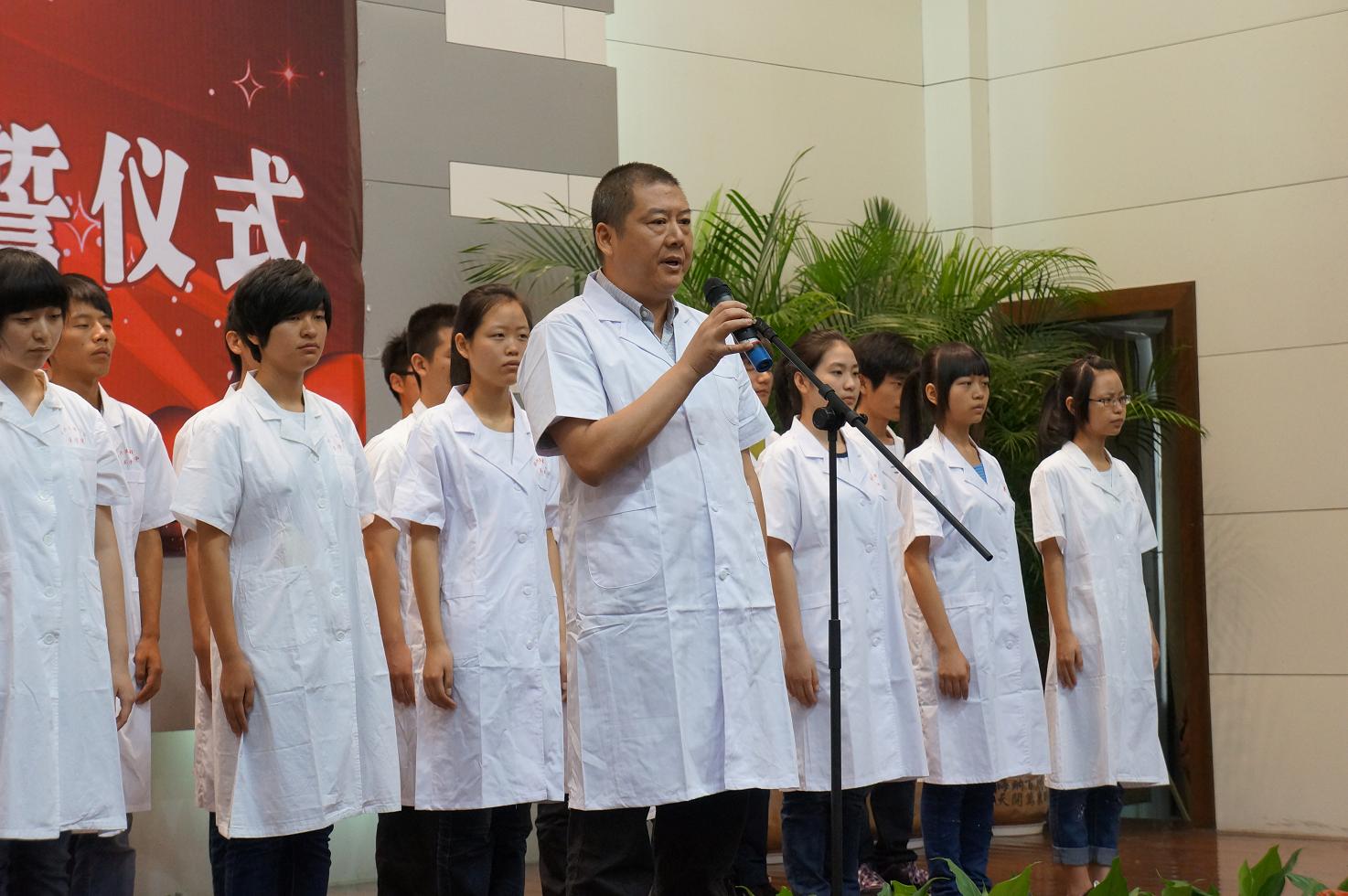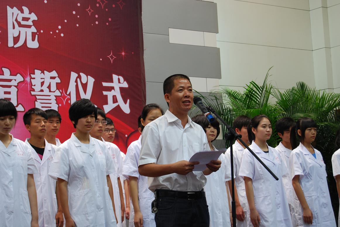 宣誓结束后,新生代表医学检验专业牛志江同学作了青春、激扬的发言,阐释了一个医学生的责任和使命,明确了追求的方向和目标。授服专家代表绍兴市中医院张居适院长在讲话中强调了医学生誓词中所反映的医学道德原则和道德规范,阐明了医德医风在医疗服务中的重要作用,明确指出了誓词是医学生和行医者的标尺和指南针,提出了要在学习中学做人、学技术,把医德放在医学学习和工作的首要位置。院党委副书记吴剑平代表学院全体师生向百忙之中光临并一直关爱和支持学院发展的各位领导和各位专家表示最热烈的欢迎和最诚挚的谢意。他在讲话中向2012级医学生提出了三点希望和要求:一是要永不懈怠,要思考并及早确定新的目标,矢志不渝,勇往直前;二是要执着追求,要践行医学生誓言中“健康所系、性命相托”的承诺,不断提高自身的道德修养,不断完善自我,使自己成为一名好大夫、好护士;三是要健康而又阳光,要自我建立阳光向上的心态,远离消极和无聊,锻炼面对失意和挫折的能力,养成健全的人格品质,成为健康成长的阳光一族。相信在全院师生的共同努力下,2012级医学生带着希望而来,四年或五年后,将满载硕果而归。