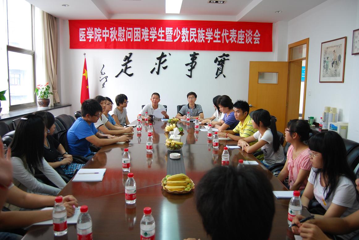 八月仲秋,丹桂飘香,在传统中秋和国庆双节来临之际,为了让远离家乡的同学们感受到节日的温馨,9月28日下午,新葡的京官网在行政楼319会议室举行了中秋慰问困难学生暨少数民族学生代表座谈会。院党委副书记吴剑平、学生科副科长马国庆、团委书记赵华与及学生代表20余人参加座谈。座谈会由资困助学辅导员胡晓琳主持。