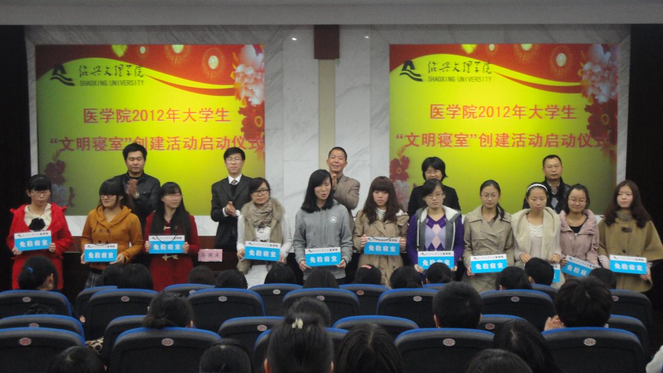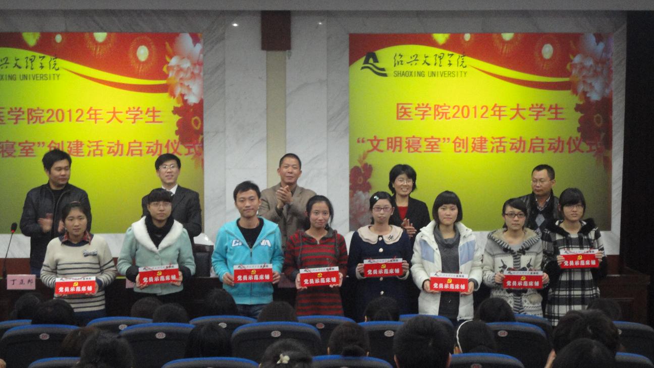仪式期间,与会领导和老师为新葡的京官网首批学生“免检寝室”及2012学年第一学期“党员示范床铺”授牌表彰。免检寝室代表朱淼同学做了表态发言,倡议全院学生建设文明寝室,做一个精神富有的当代大学生。